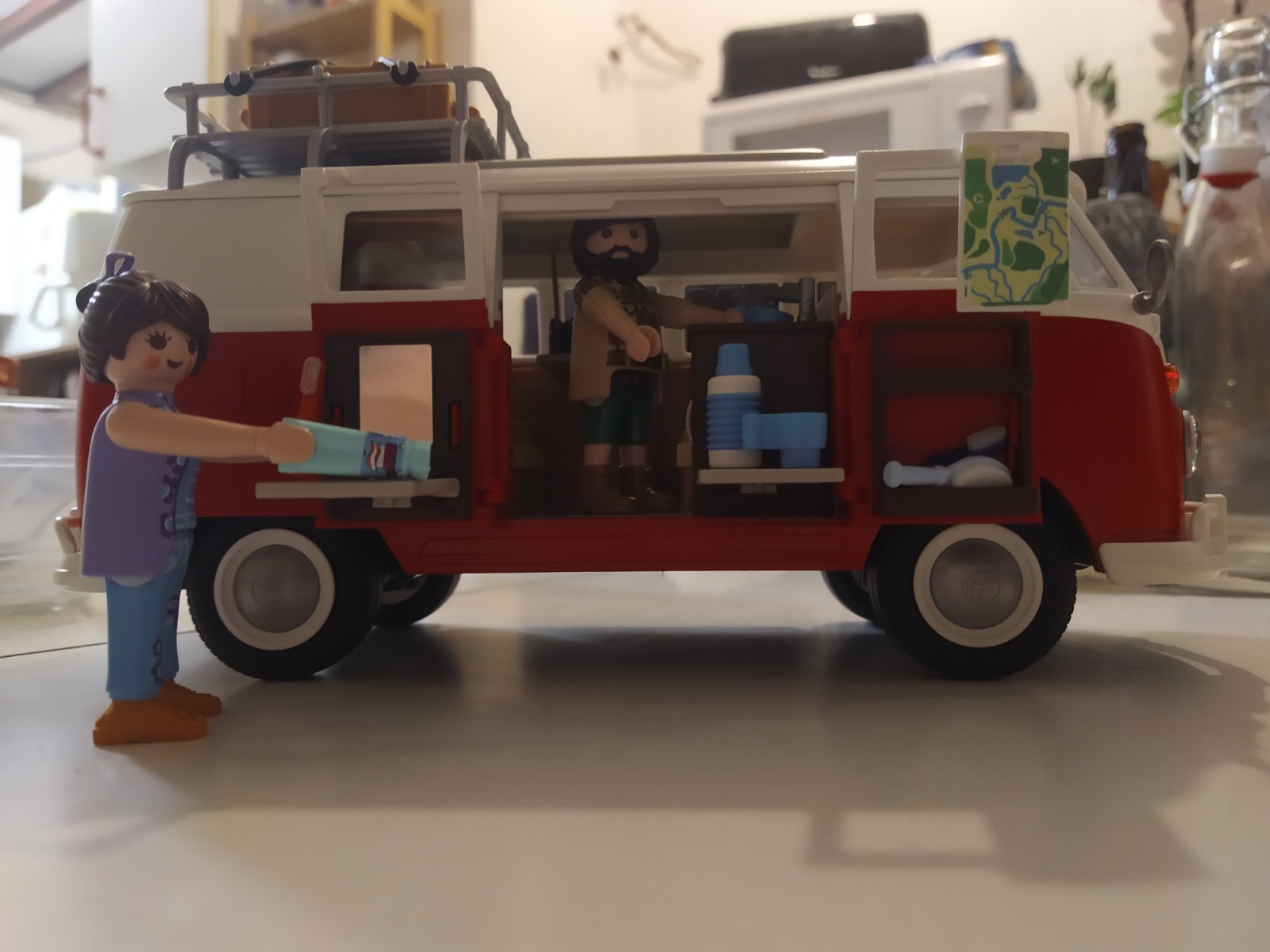 Salut Dédé, Je ne saurais pas te dire l'échelle, ce n'est écrit nulle part sur l'emballage... Mais pour te donner une idée, le 2 petits Playmobil mesurent 7,5 cm de haut Et ils sont allés jusqu'au bout dans les détails : moteur visible à l'arrière, rangements partout, tables de camping qui se déploi...