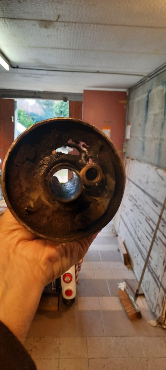 C est là butée/ guide qui était pourri et percé de rouille La bague de guidage avait disparue....... J ai vu la procédure sur un forum : Meuler le cordon de soudure J ai soudé un écrou sur la butée et avec un arrache à inertie j ai enlevé la butée. Je vais en commander une chez Cmalin et la ressoude...