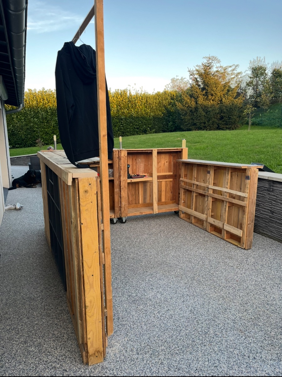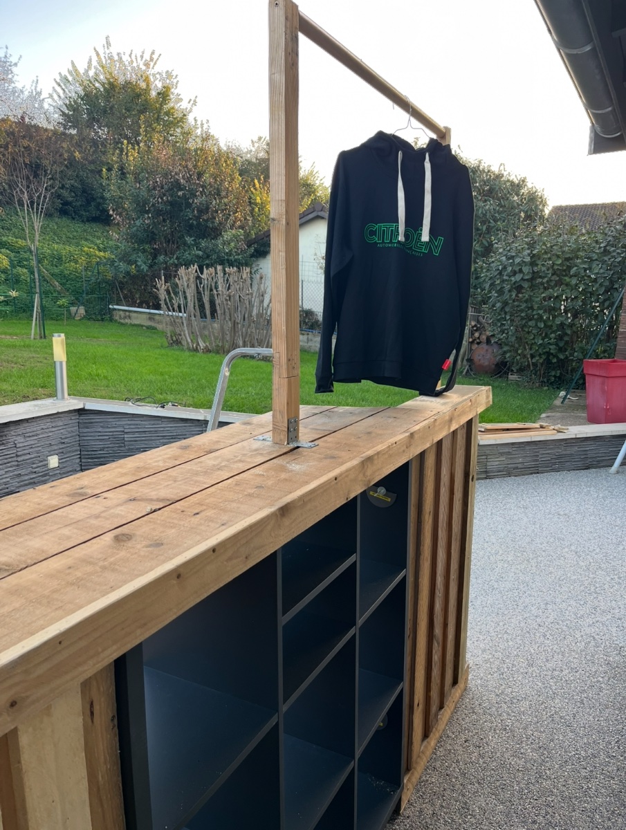 Hier, bricolage avec Denis sur la banque du club et mise en place d’une penderie pour le vente de t-shirt et veste de la boutique