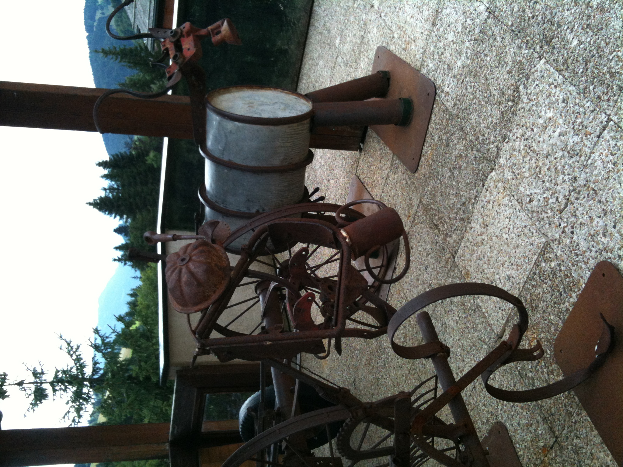 Pour la petite histoire, le Grand Bo est la capitale de l' "Art Vache" : on y trouve des représentations de vaches de toutes sortes, en peinture, en sculpture, en composition diverses... comme ici avec diverses pièces métalliques et mécaniques.