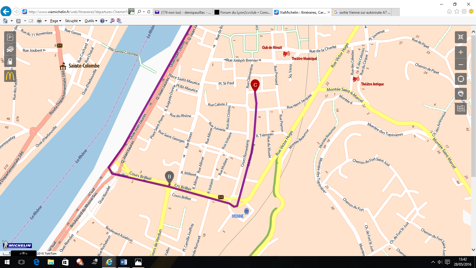 Je devrai arriver à Vienne vers 16h30 16h45 si la traversée de Lyon se passe bien...