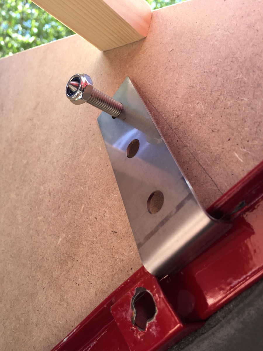 Soit au niveau de la flèche du bas, mais la surface est plate donc soit je tords ma pince, soit j'espère fort que ça tiens. Soit au niveau de la flèche du haut mais là ça se complique un peu vu que c'est derrière la planche et ma pièce ne va pas si loin donc je devrais plier mon crochet pour pouvoir accrocher ou soit bricoler un truc pour y accrocher ...