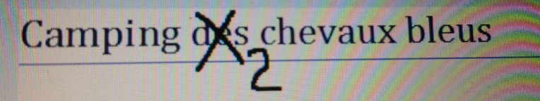 Réaliser une enseigne . Nous avons retenu pour enseigne " Camping des chevaux bleus" avec une petite nuance ,car le "des " sera rayé façon sale gosse