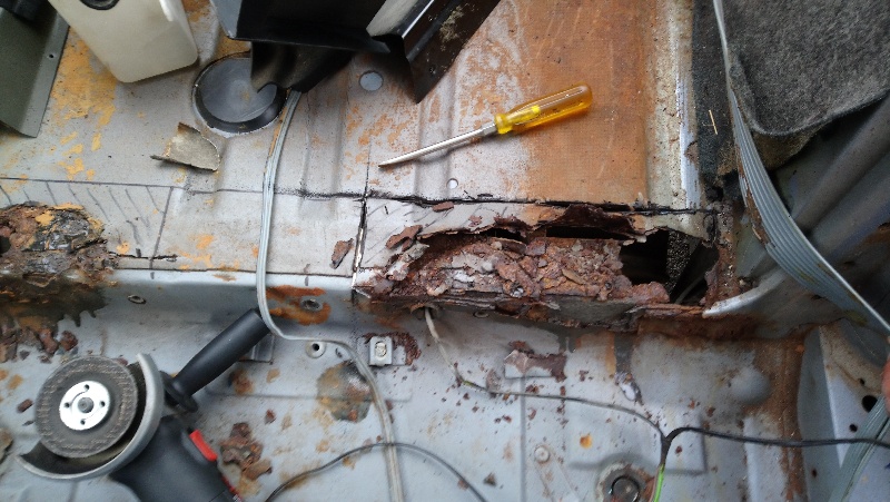 La suite avec la pose d'une tôle de plancher de réparation dont l'avantage étant d'avoir un angle formé.