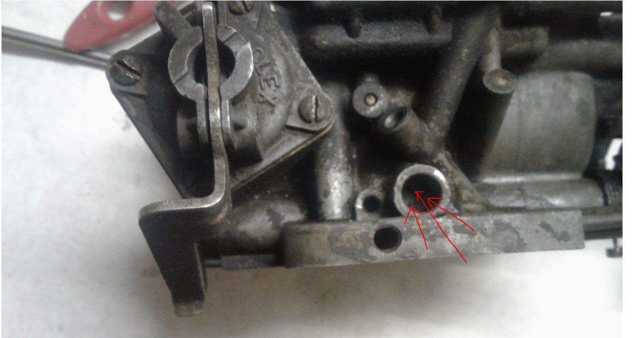 en démontant le carbu je m’aperçois que que sous la vis d'air il y a dans un tube creux 3 petit trous qui débouchent au niveau du petit papillon !!!!