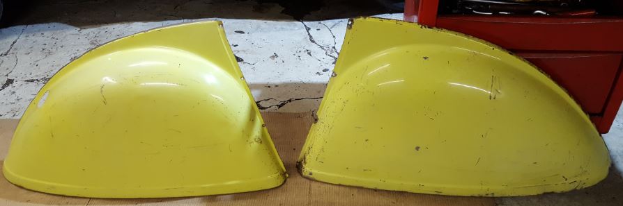 par contre j'hésite entre les 2 ailes gauches, celle (à droite) qui était repeinte à la main et celle (à gauche) qui est en mauvais état mais peinture d'origine.