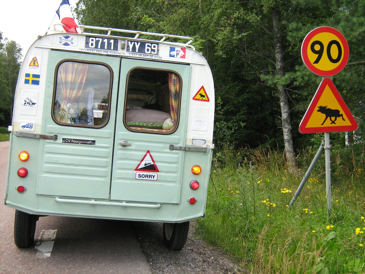 Ci-dessous, petite photo souvenir en Suède à l'été 2007. Depuis quelques années, une Méhari à rejoint la bande. Autrefois propriété de notre ami Pierre Givre, elle est la concrétisation d'un vieux rêve. Elle me sert habituellement pour les balades dans les environs , mais elle nous a aussi accompagné un peu plus loin notamment sur la Côte d'Azur ces 2 derniers étés où nous avons apprécié flaner à son volant...