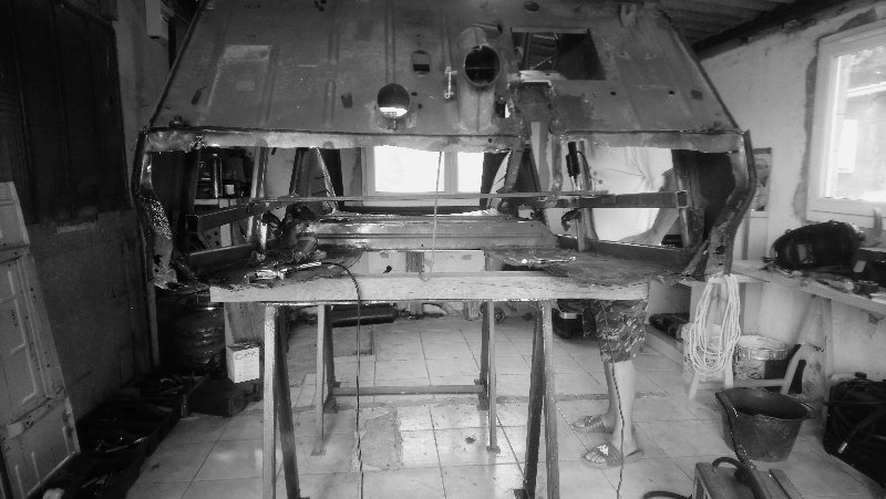 La caisse est entré dans le garage et il a mis en place les renforts pour que l'équerrage ne bouge pas, et enlevé le reste du plancher pédales !
