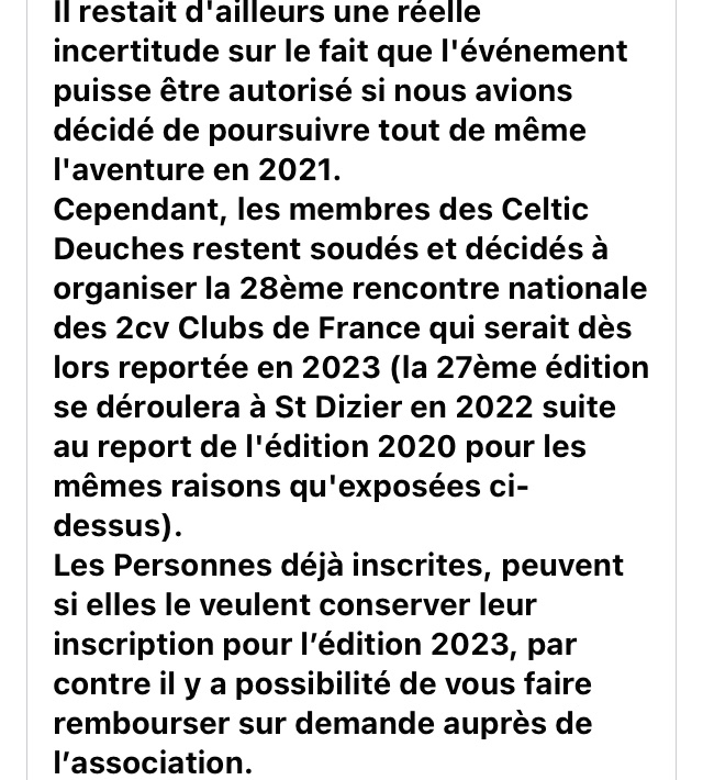 Comme j'aimerais que tu te trompes Dédé, 2021 sera ma première année de retraite et nos grands évènements je les avais imaginé avec ma participation active de nouvel "inactif"