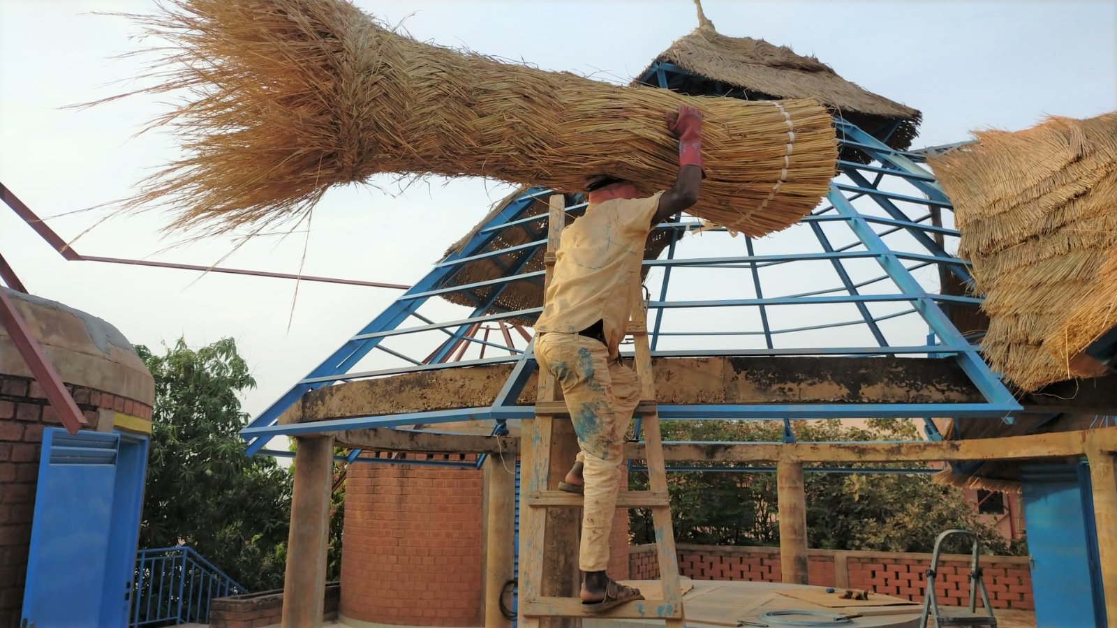 Il me reste une semaine pour couvrir la paillotte centrale. sachant qu'il me reste à souder quelques cornière au niveau des portes des 2 dernière cases.