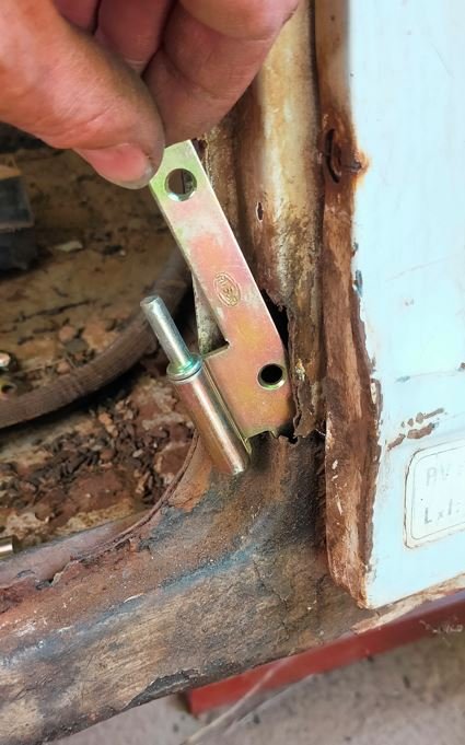 Je n'avais pas posté cette photo, montrant le gond de porte modifié, et fixé sur la carrosserie de l'acadiane.