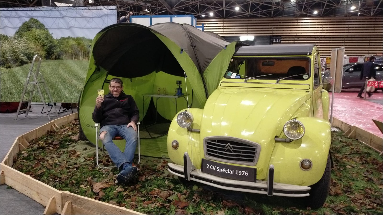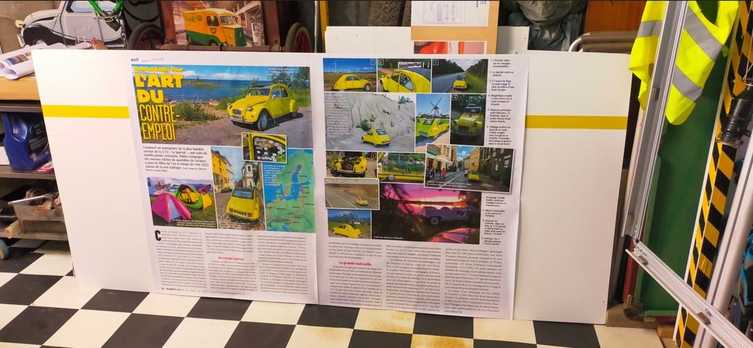 Aujourd’hui, validation du positionnement de la voiture et tente et mise en place des affiches plastifié.