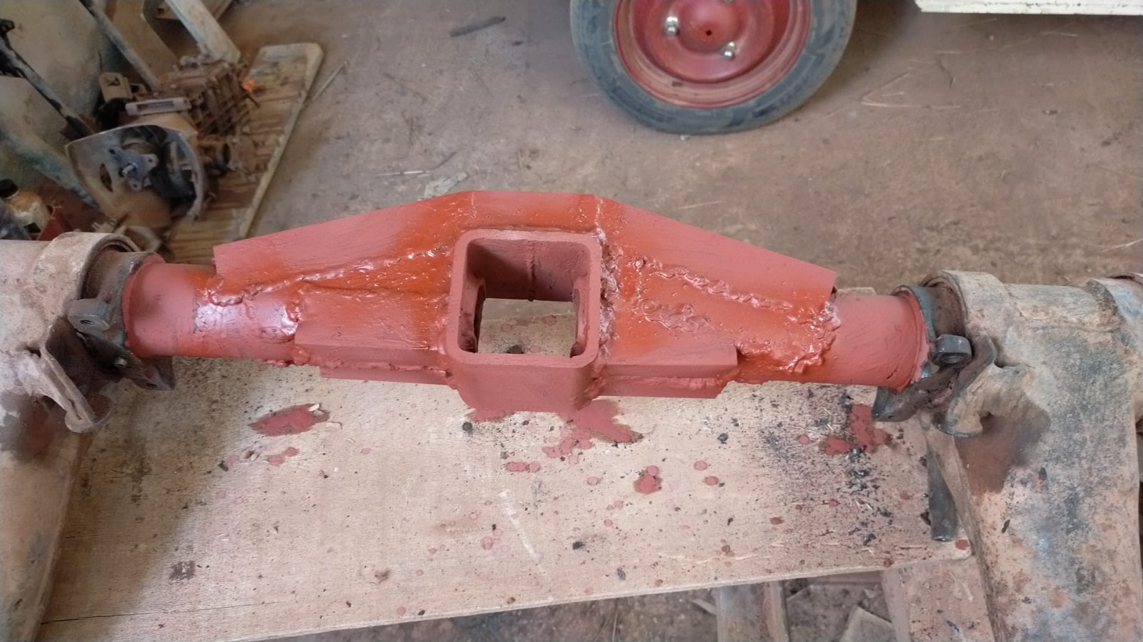 Christian Roux m'a conseiller d'ajouter un renfort sur l'essieux arrière. Les première acadiane qu'il a faites n'avait pas le renfort, et une d'elle à commencé à avoir un train arrière de Gordini.