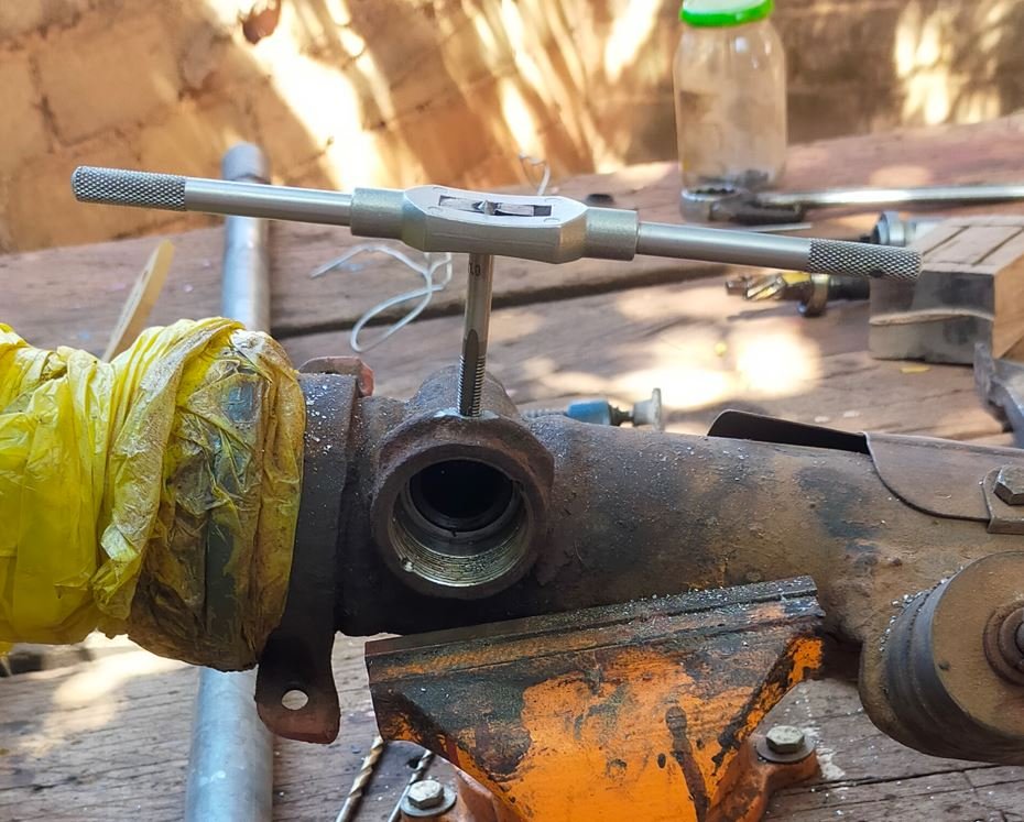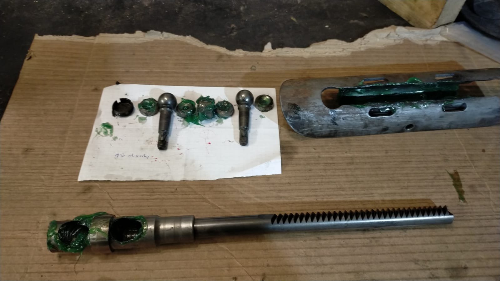 Pour le réglage de la pression sur le poussoir, mise en place de la crémaillère avec le volant pour faire tourner et sentir les point durs entre le pignon et la crémaillère.