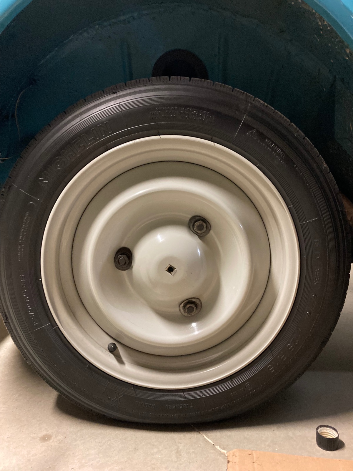 Hier remontage des roues arrières avec des pneus flambants neufs (merci Clément), vidange du pont mais pas remis en huile car bouchon de remplissage très petit ! Un Ami va me trouver une solution d'ici peu !