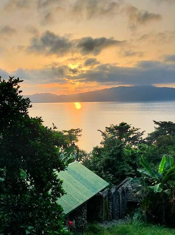 Ce matin, lever du soleil sur le lac vu de la terrasse de la chambre:
