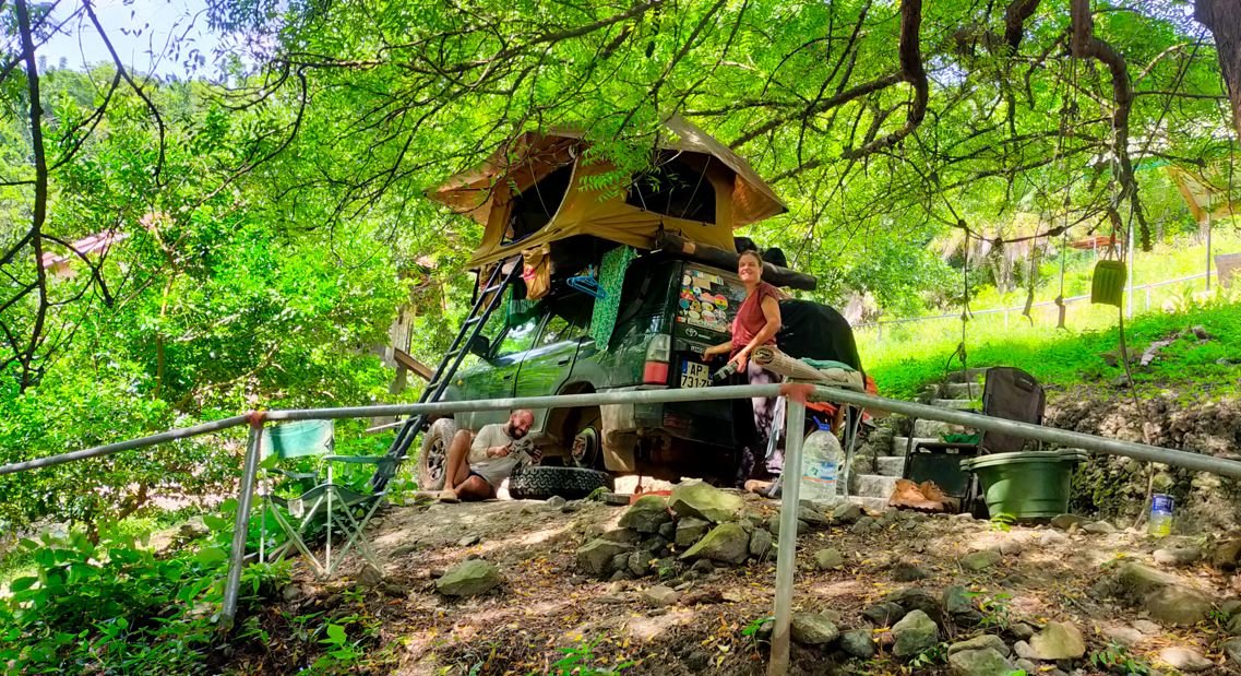 Avant de partir, j'ai donner un coup de main à des touristes Français pour remonter un piston d'étrier de frein à disque.