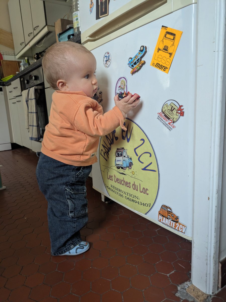 Aujourd'hui je joue avec les deuches sur le frigo de Mamie Faille et Dadiche.