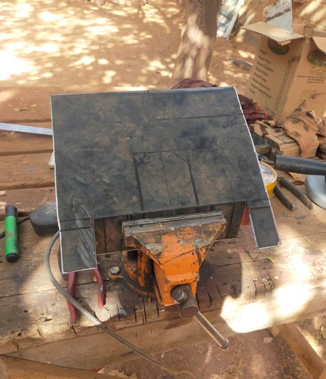 Le pas d'une rainure fait 7 cm, si je veux respecter le motif, je doit raccourcir le cache en enlevant 14 cm. et fermer le haut avec une tôle fixe.