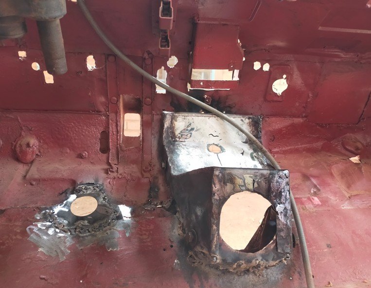 J'ai ouvert le bas arrière du caisson, afin de pouvoir souder les tôles de prolongation du plancher.