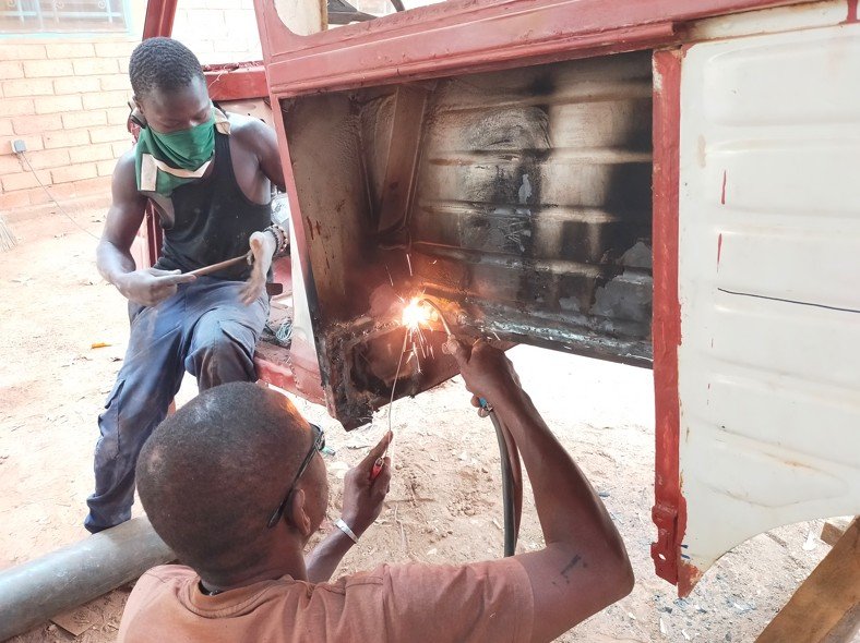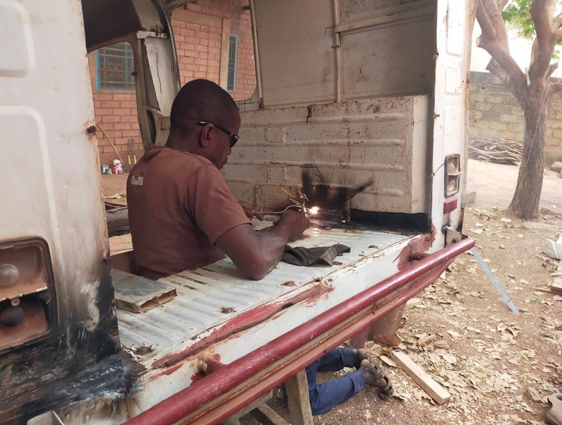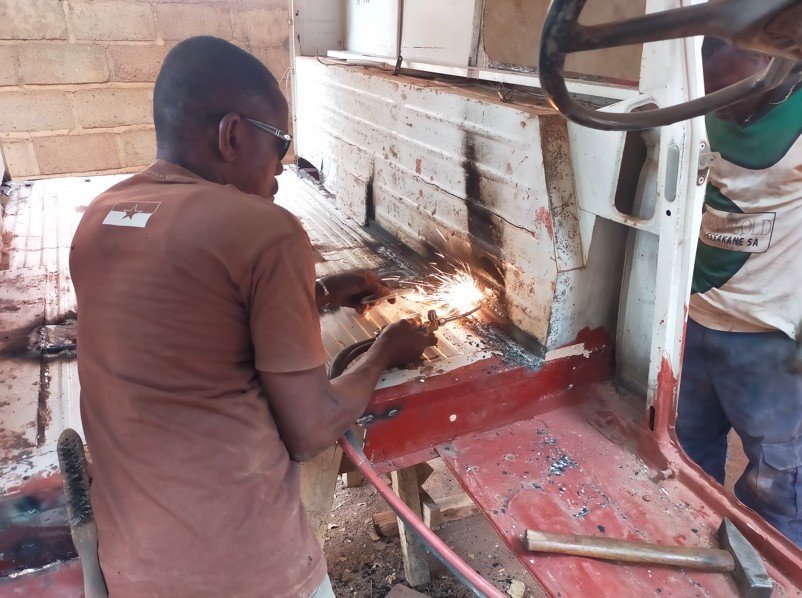 Hier, c'était opération soudure "avec le feu" de toute la partie basse de la caisse.