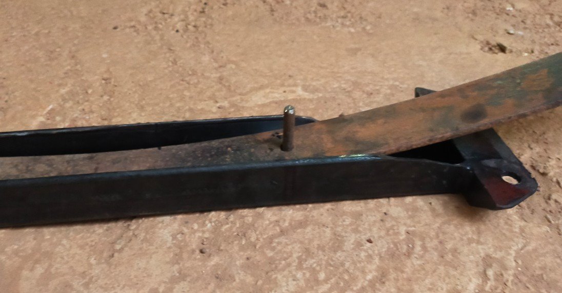 Afin d'échapper la lame de ressort, et aussi la proximité des raccords de frein, j'ai allongé le bras de levier, ce qui permet d'avoir la tringle sur le bord du châssis. ça permet aussi d'avoir beaucoup moins d'effort pour le manipuler.