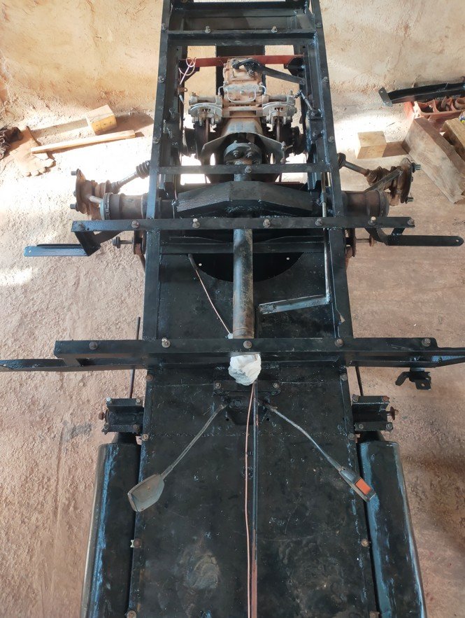 j'ai du la recouper de 4 cm de chaque coté. une fois les roues monté, je l'ai posé au sol pour évaluer la capacité à porter la voiture, et la hauteur qu'il faudrait ajouter si je veux avoir une hauteur de châssis autour de 28 cm (comme une 2CV si je ne me trompe pas) en étant porté que par la lame. mais sans rien à l'arrière, il n'y avait pas beaucoup de force sur la lame.