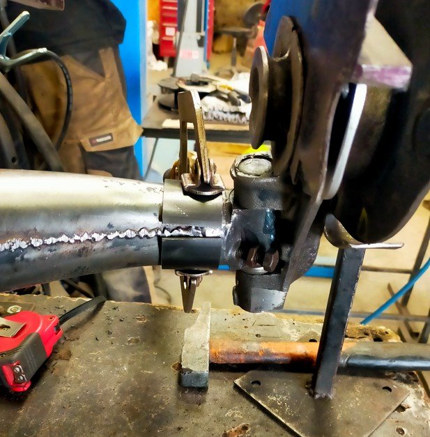 - je mets un vieille axe sur le pivot du bas
