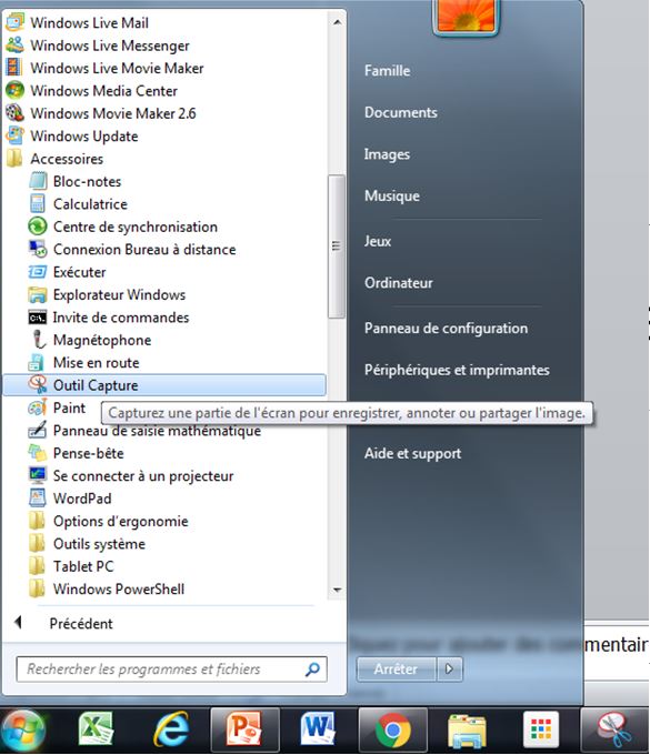 Si vous ne l'avez pas en bas de l'écran, vous pouvez aller le chercher dans les programmes accessoire.