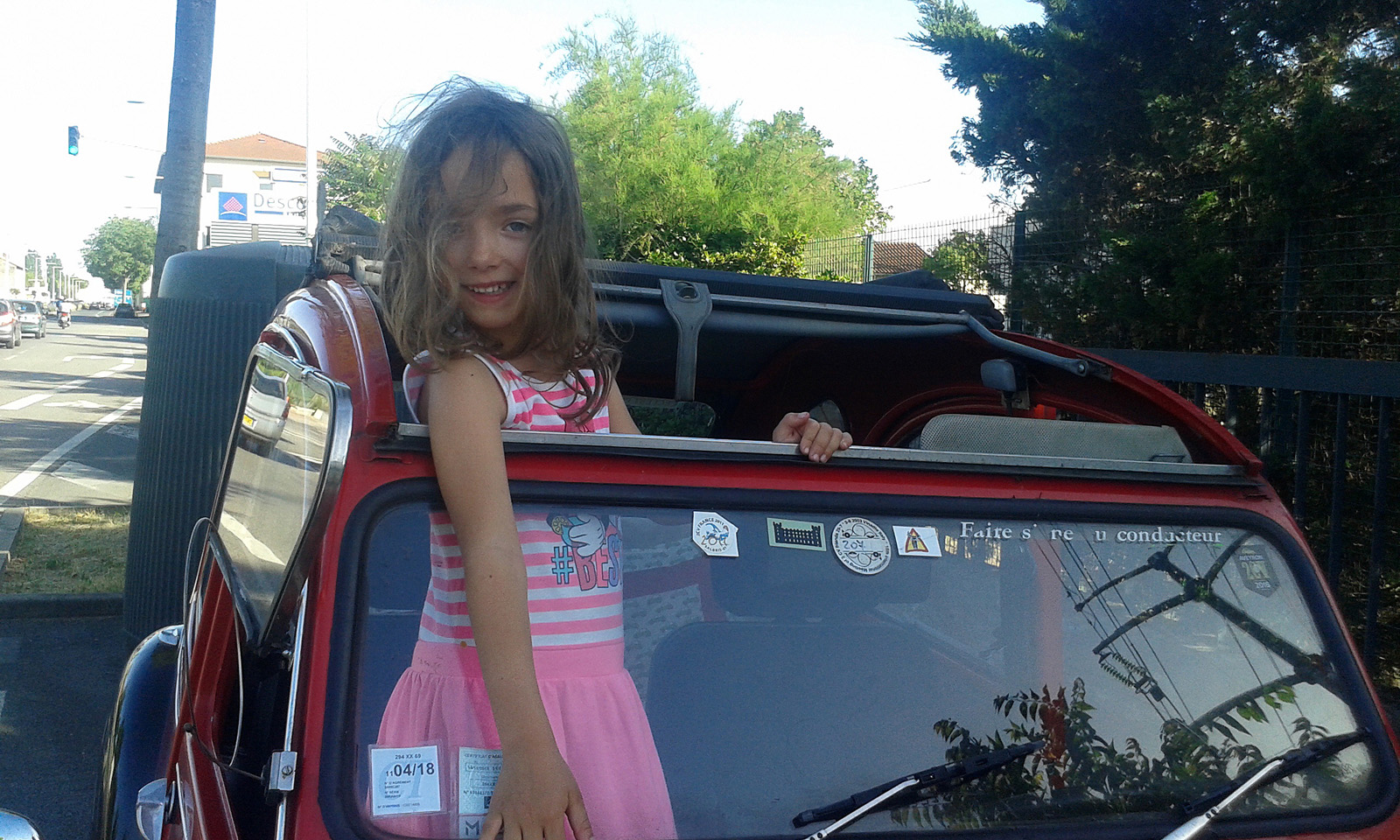 C'est sûr pour les courbes de la Deuch, malheureusement il y a deux dindes qui empêchent de profiter pleinement de cette belle 2cv !!!