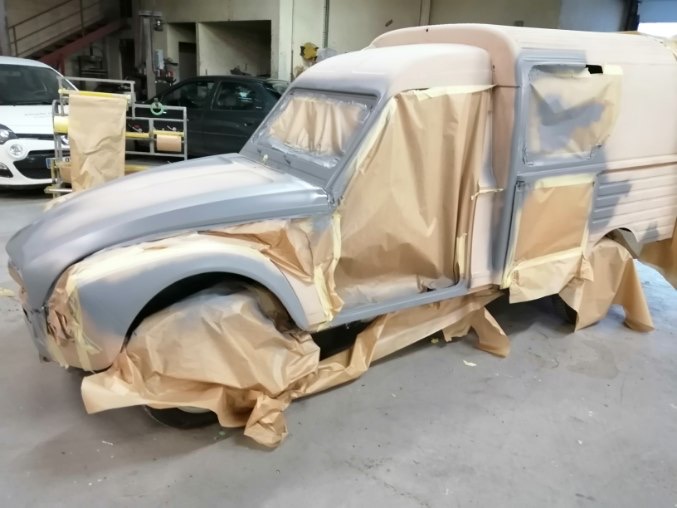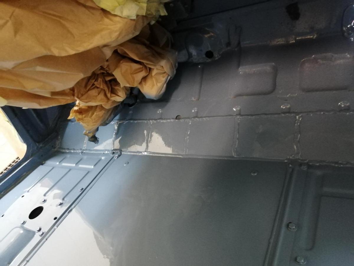 Après application du beige, mon carrossier a attaqué les planchers latéraux.