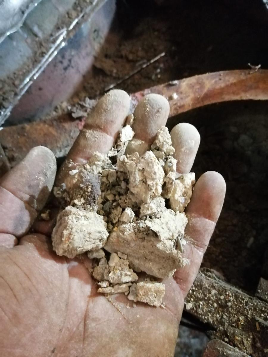 Et on fait des découvertes ! Le châssis est plein de gravas, on va finalement gagner quelques kilos...