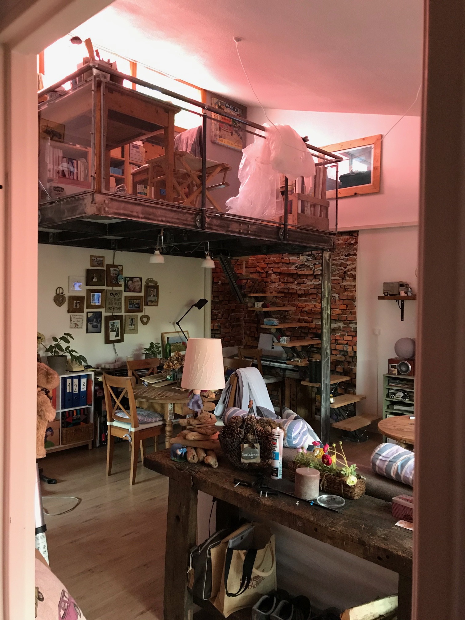 La configuration des lieux avec un faitage à 4.5m et des fenêtres hautes les prédestinaient à l'installation d'une mezzanine.