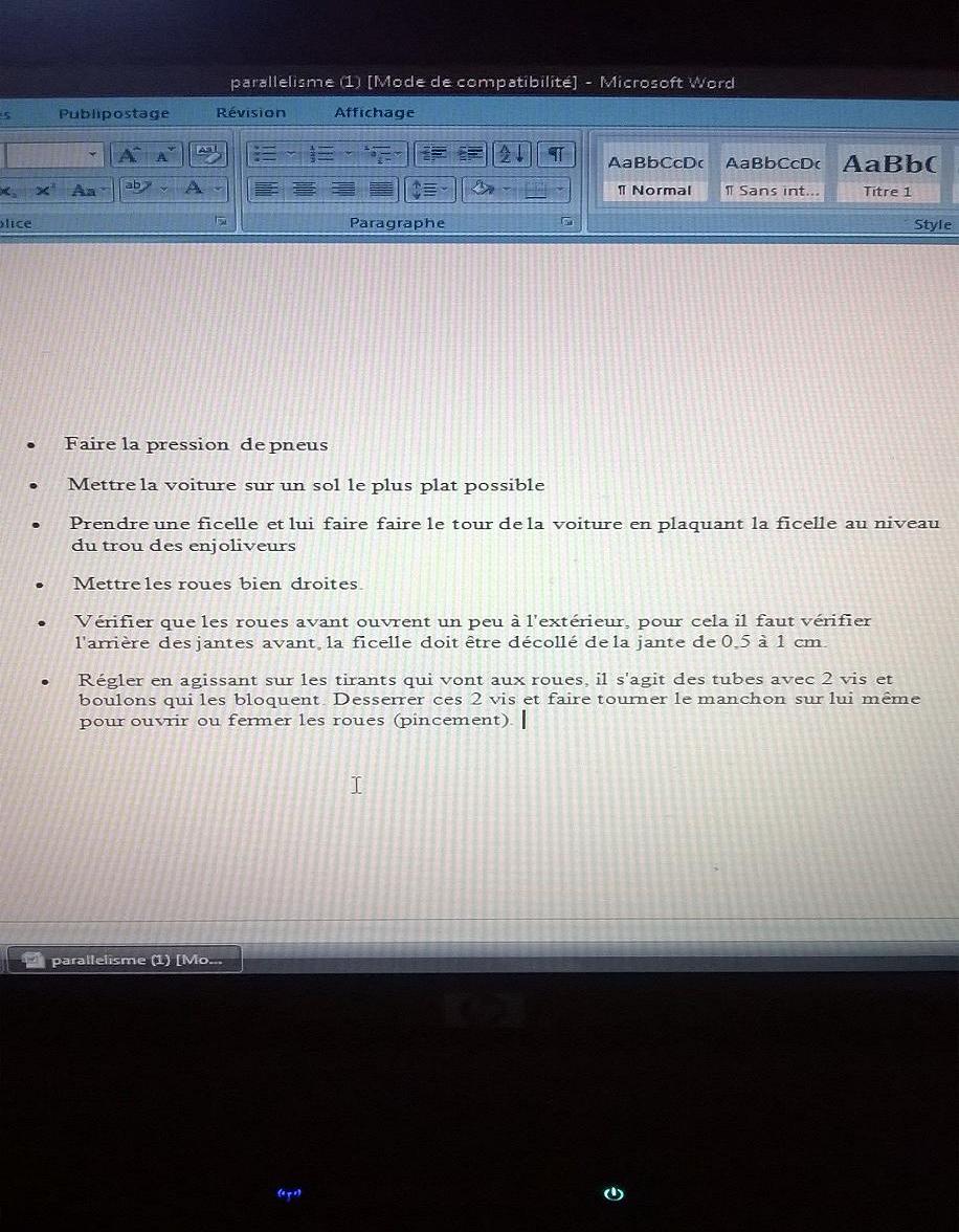 Je fais le tour de la voiture au niveau de l'axe des roues avec un fil assez gros, voir le détail ci-joint, j'ai fait le réglage suivant cette méthode sur la deuche depuis plusieurs années et les pneus s'usent de façon très régulière.