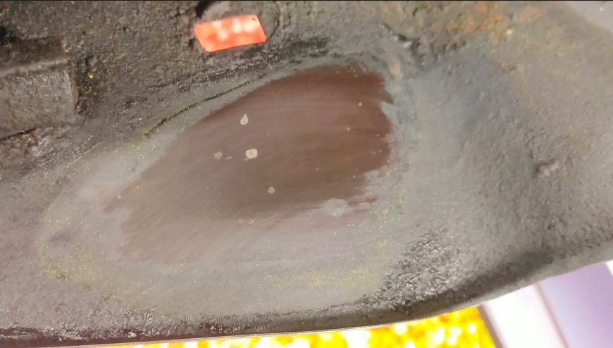 Finalement, je constate que le châssis est peint avec une peinture marron, assez brillante. donc pas avec du noire à châssis.