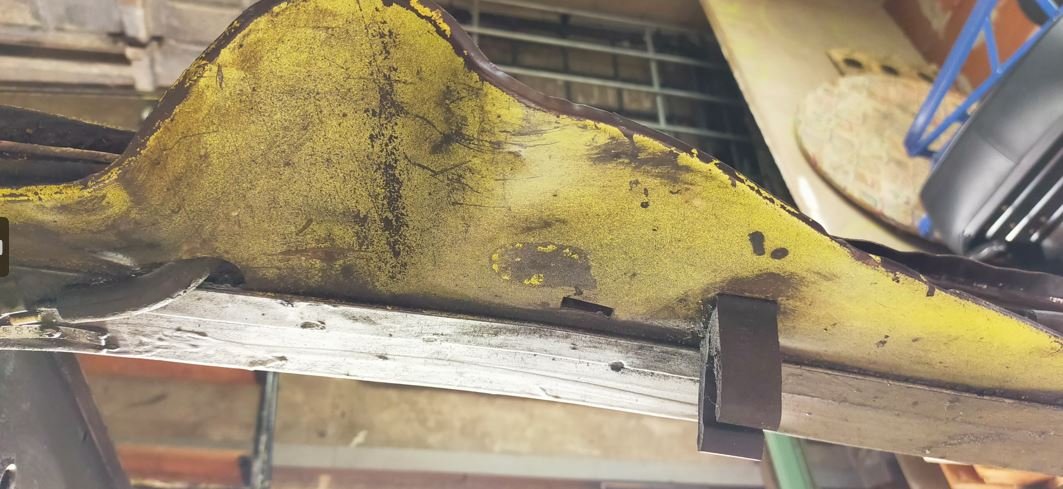 une nouvelle photo avec la coque en l'air, mais cette fois avec 2 châssis, le vieux dessus et le neuf dessous