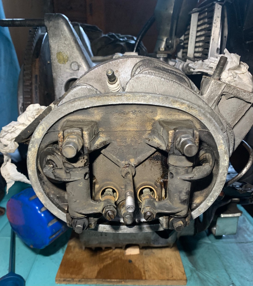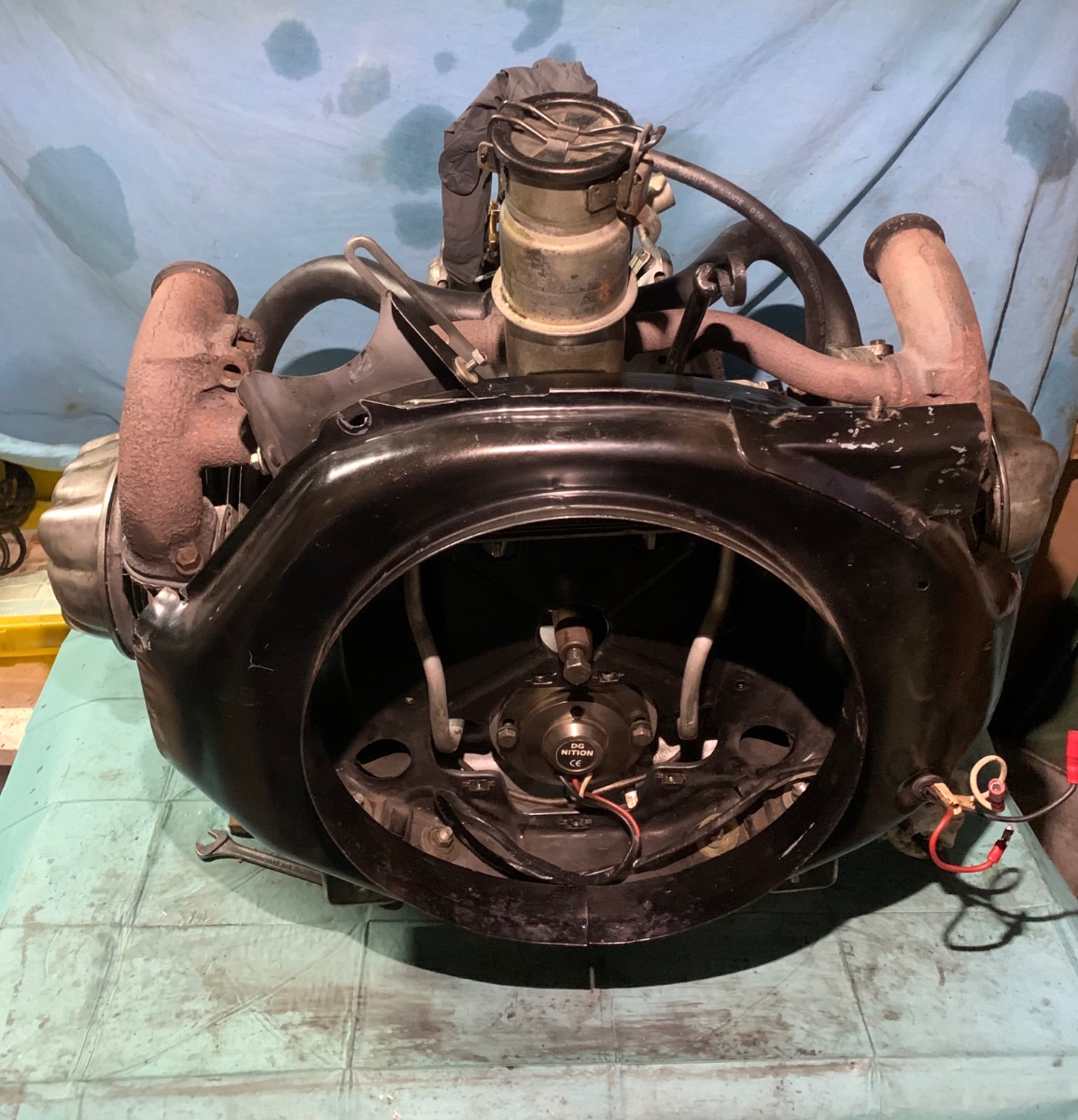 Aujourd’hui, dépose du moteur et début de remise en état du remplaçant avec mise en place du reniflard et de la pompe à essence de l’ancien
