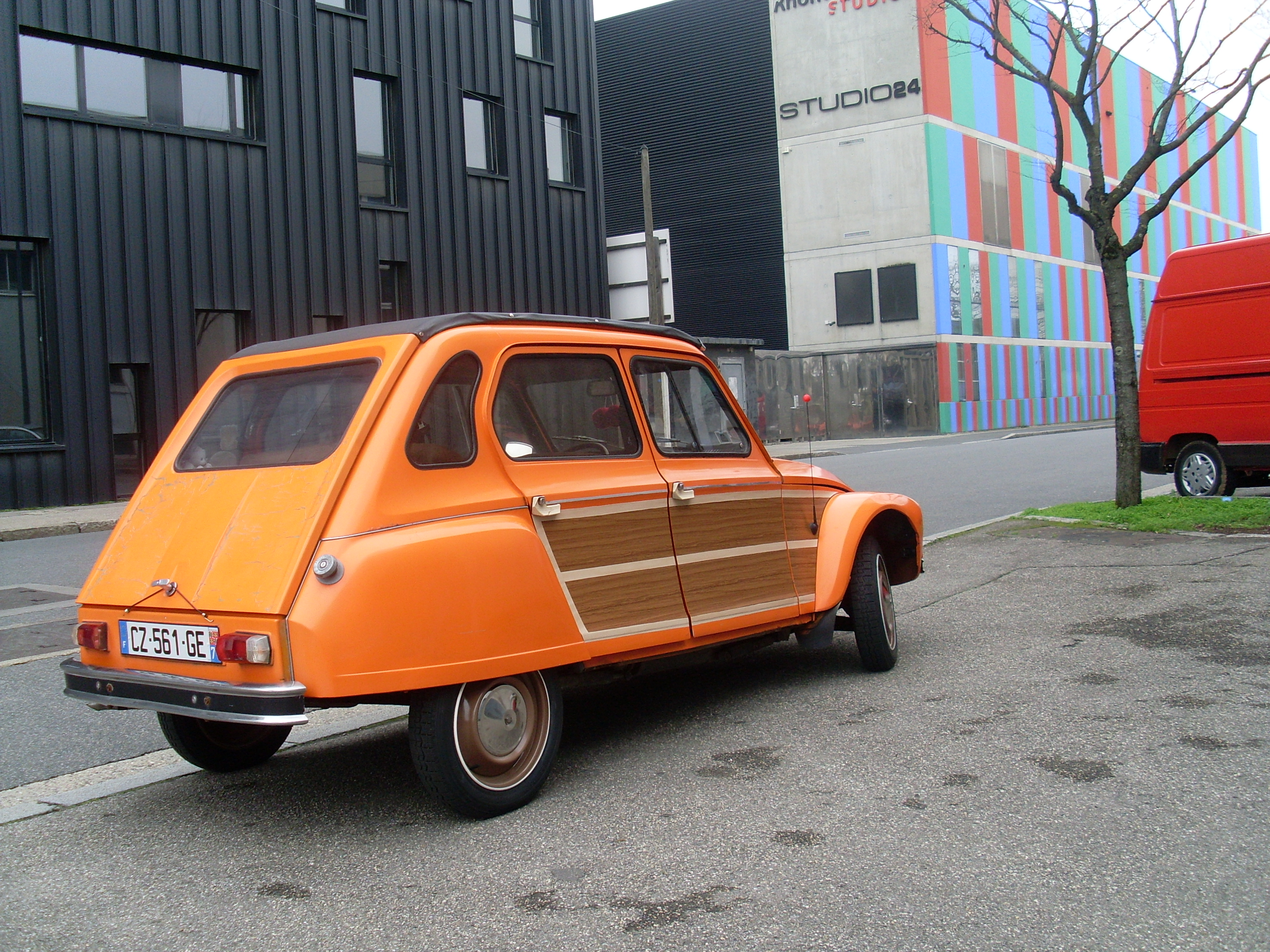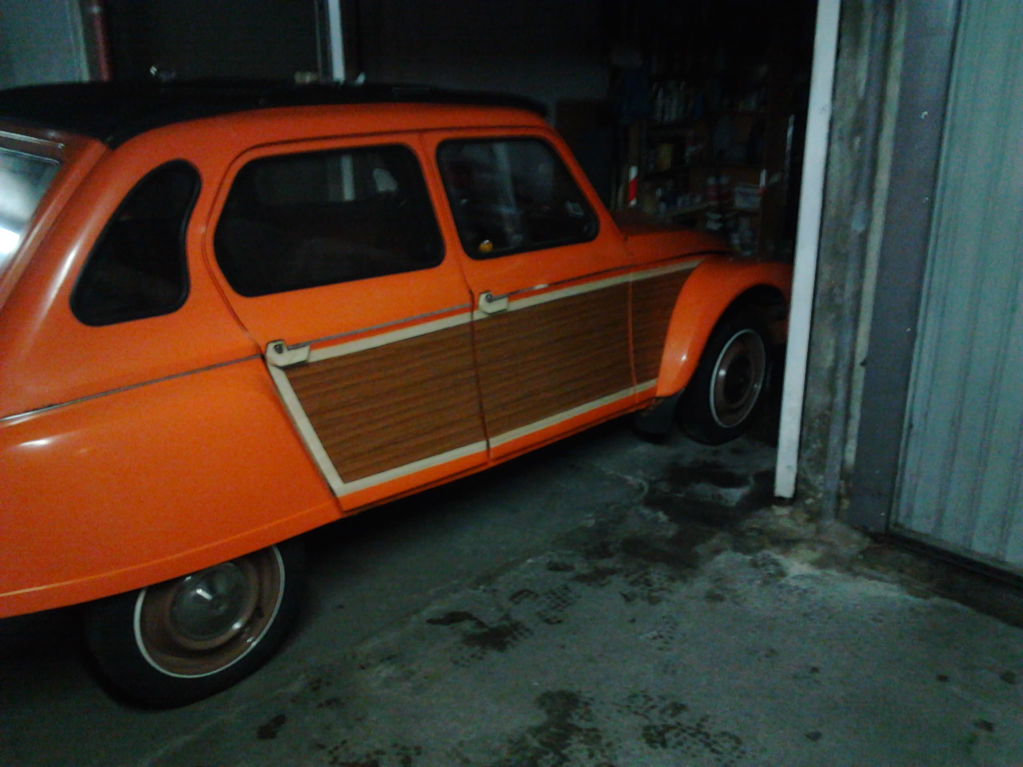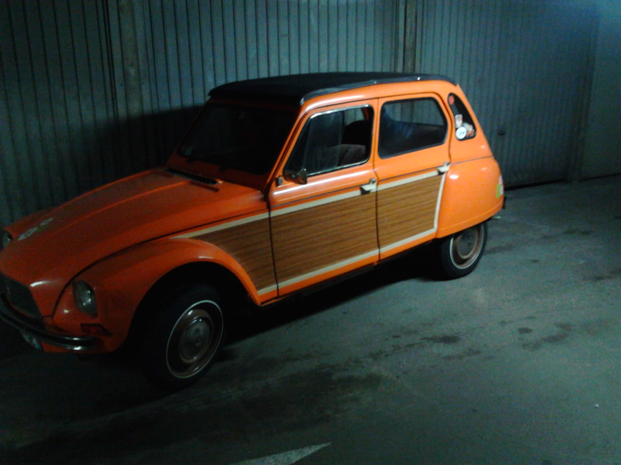 transfo du jour sur la dyane coté en faux bois style woody ;;