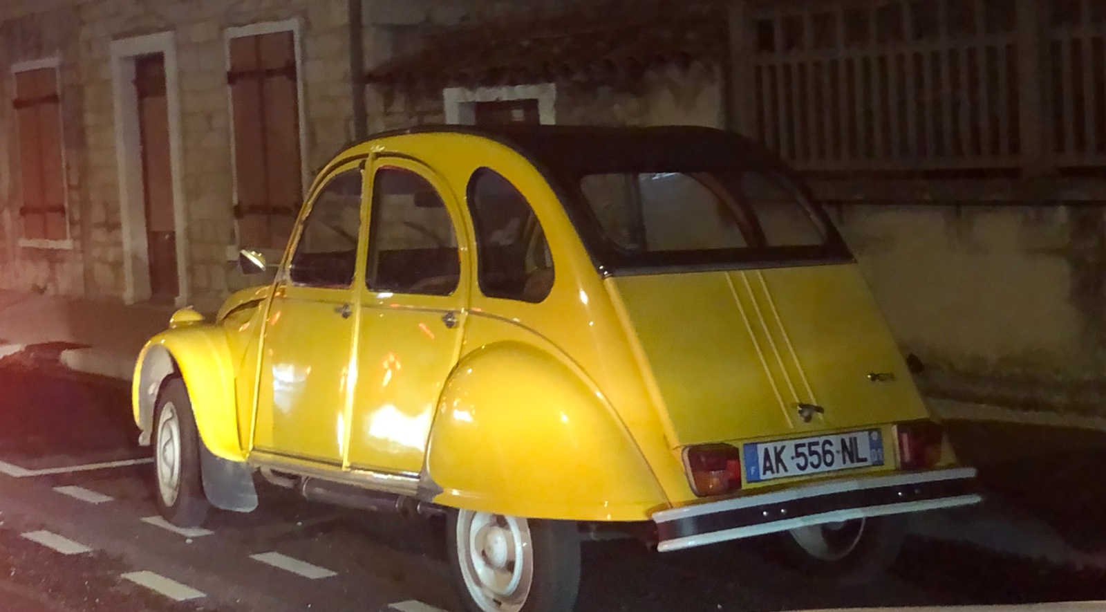 Une belle (et rare) (je crois ne jamais en avoir vu !) Dyane jaune Cédrat croisée dans les sous-sol de la citée internationale.