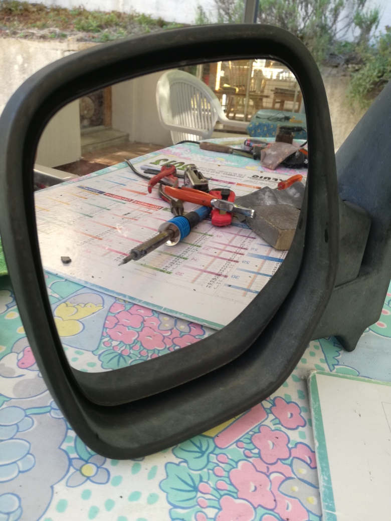 Aujourd'hui pour le Berlingo de mon fils, de deux rétros cassé j'en est fait un. J'ai chauffé le plastique pour recoller ce qui était fendu, remis un peu de matière et hop le tour est joué