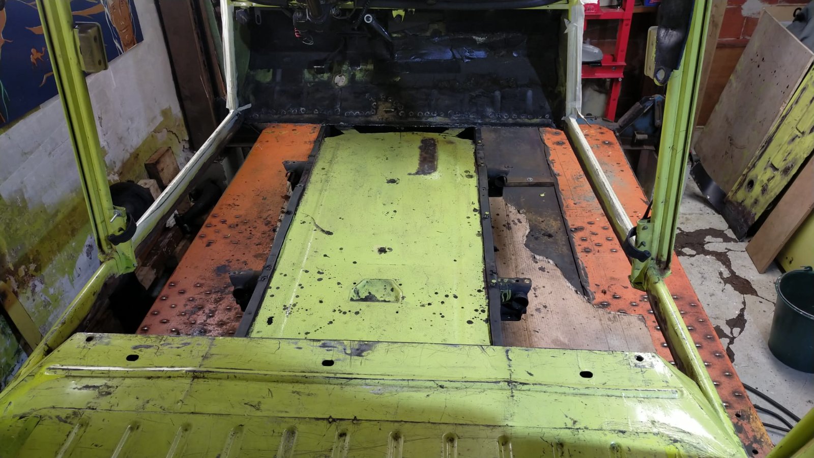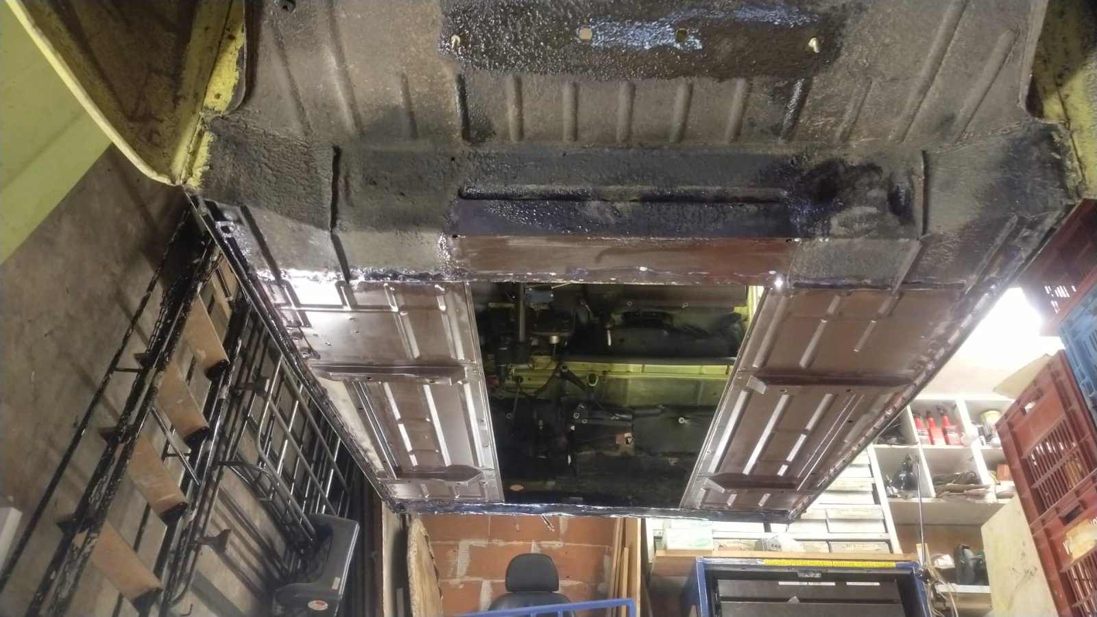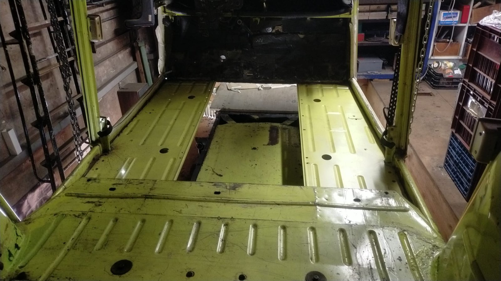 Planchers soudés et caisse levée du vieux châssis