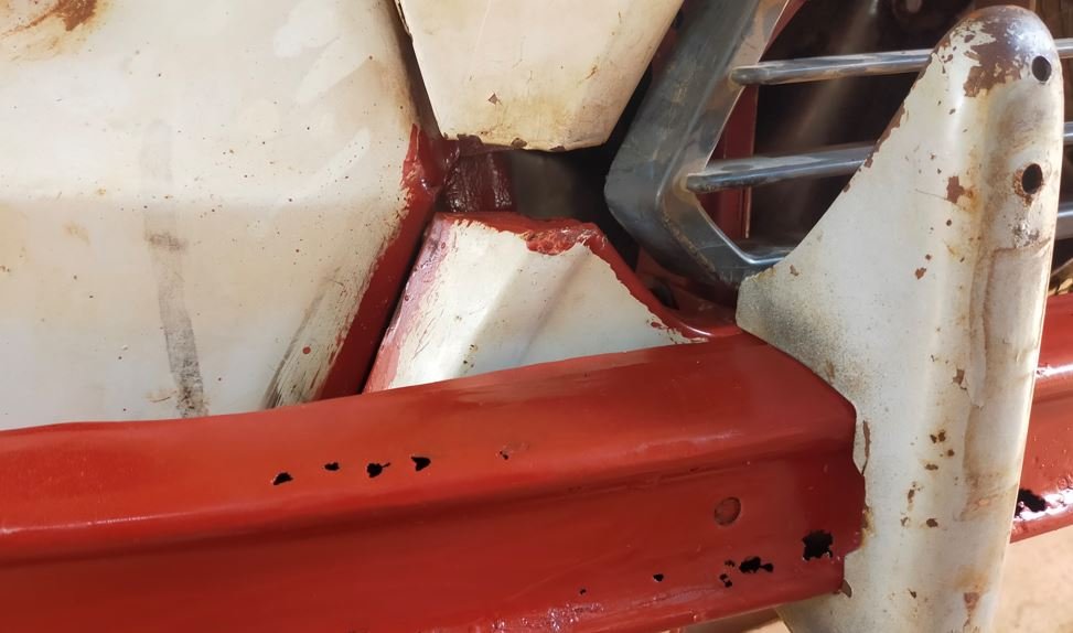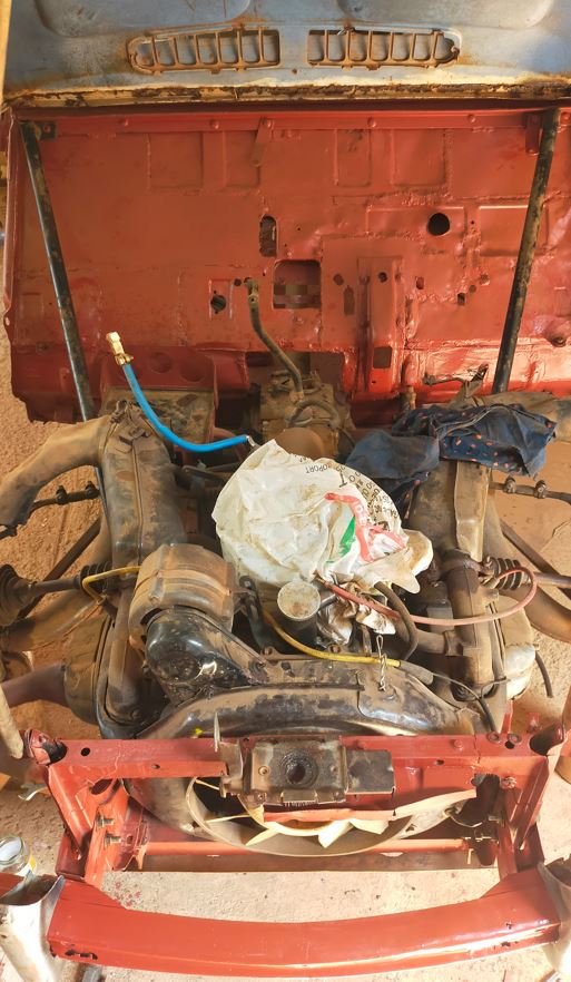 Il faut aussi penser à la barre qui relie les ailes et sert de support à la roue de secours ! Cela peut gêner car elle est plus basse que le carburateur et son filtre, et il n'y a pas beaucoup d'espace pour lever l'ensemble !