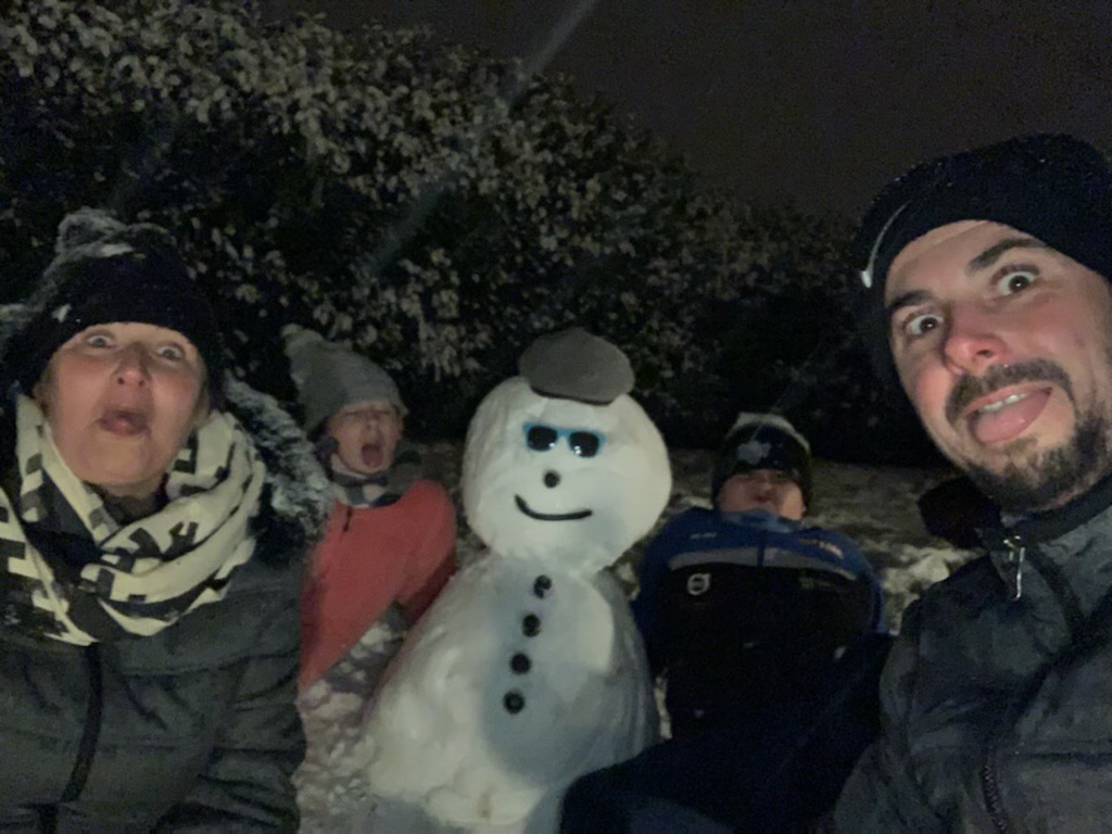 Hier soir nous avons fait un bonhomme de neige à 22h avec les enfants, c était pour nous faire digérer la bonne fondue au fromage que nous avions manger juste avant (petite pensée à nos amis suisse