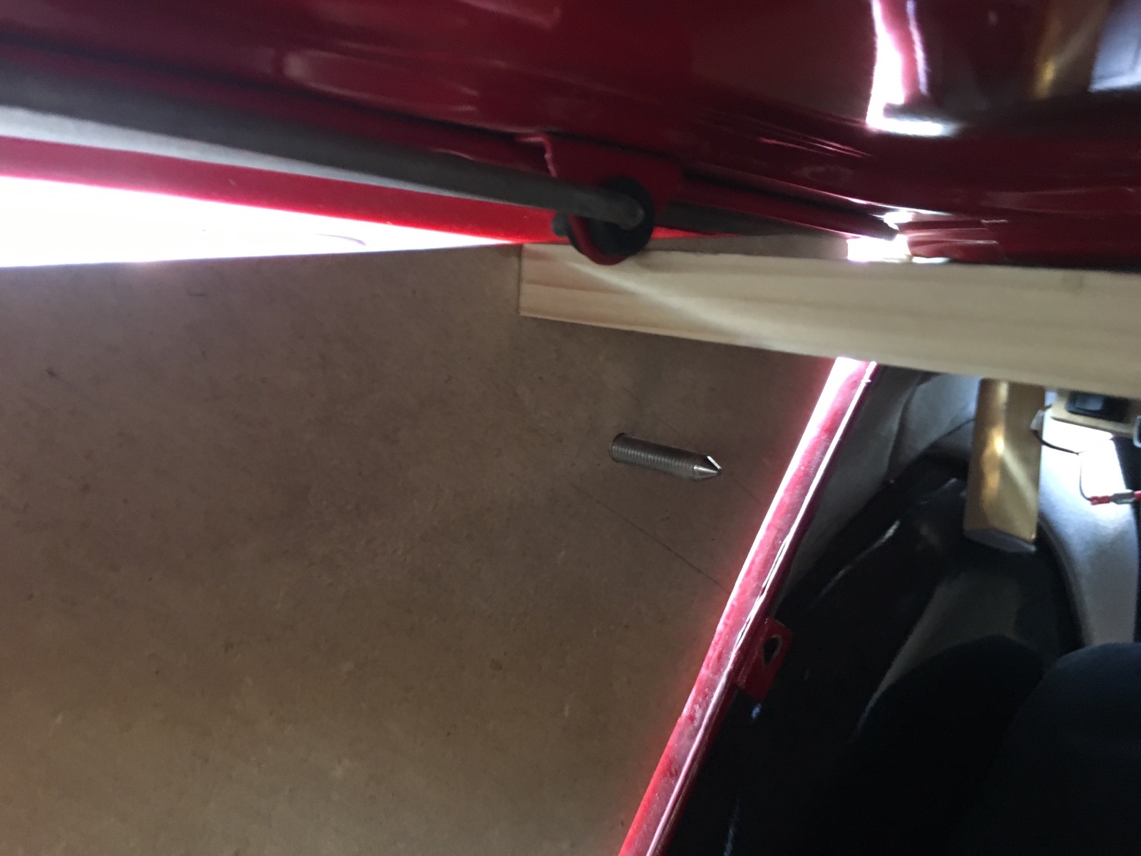 Tu pourrais peut être en mettre un sur ta baie de pare brise et y fixer ta charnière de capot