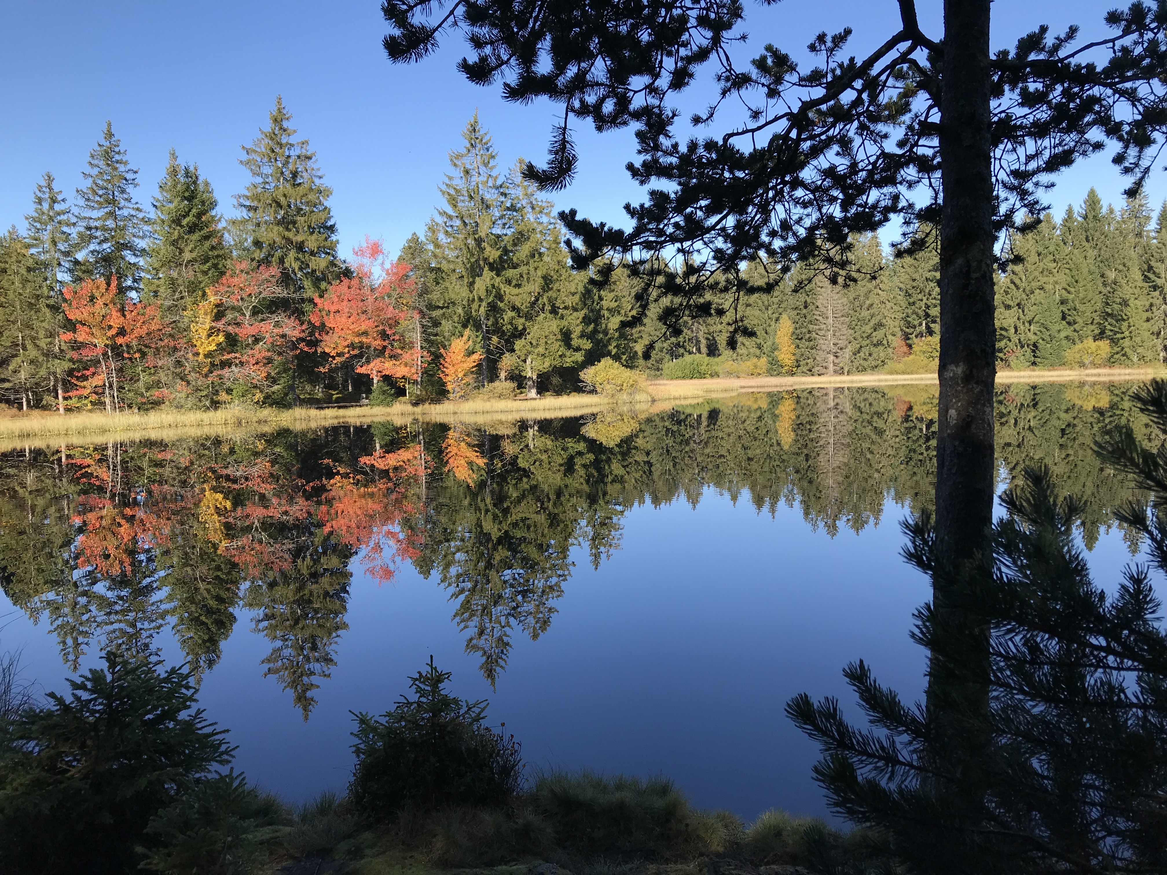 Nous profitons de la matinée du samedi pour aller nous balader à l'étang de la Gruère. Magique