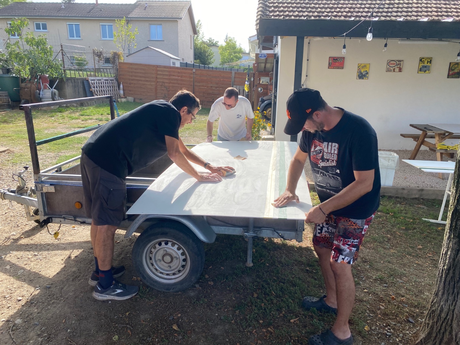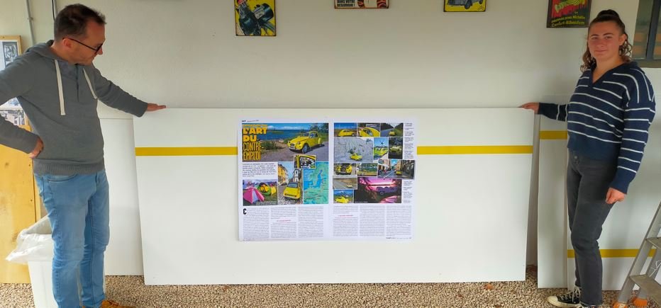 Voilà le panneau que nous allons recycler pour l’occasion dans le but de présenter la 2 CV deJacques.