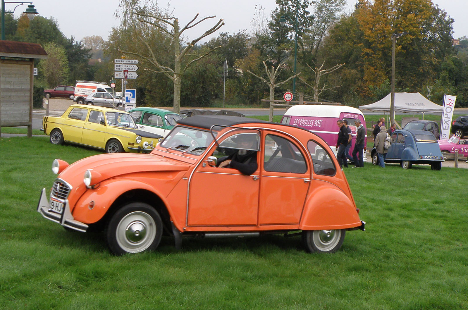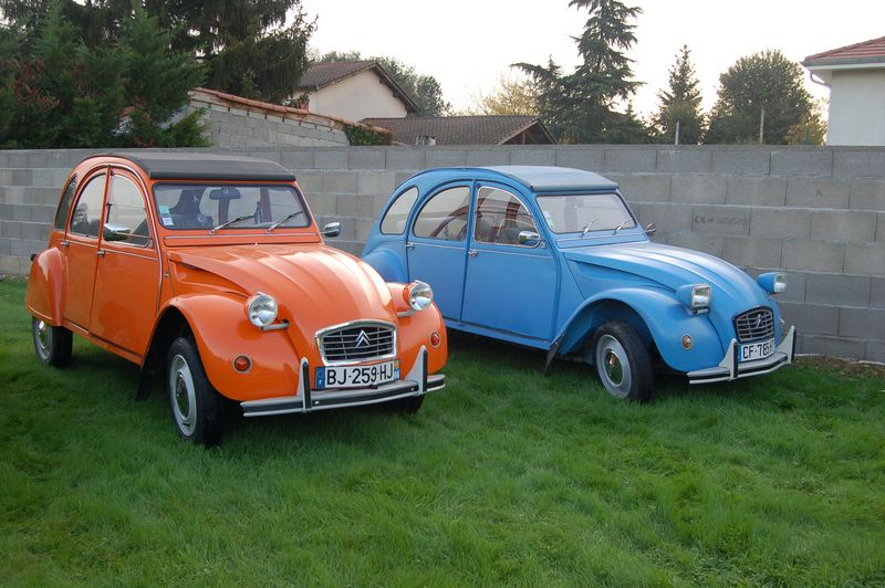 2cv orange mandarine de Ptimotard et 2cv bleu myosotis de Calyan (vous savez celui qui la trouve "pas présentable" car un peu de peau d'orange et mat) ! Et alors, elle est très bien quand même !
