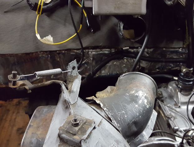 Par contre, il a fallu adapter la patte du cable d'accélérateur. (une que j'avais que j'ai tordu pour être en face) et aussi changer la position du ressort de rappel.
