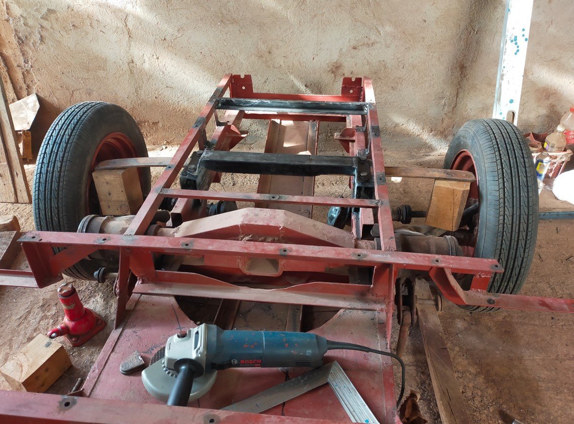 j'ai du la recouper de 4 cm de chaque coté. une fois les roues monté, je l'ai posé au sol pour évaluer la capacité à porter la voiture, et la hauteur qu'il faudrait ajouter si je veux avoir une hauteur de châssis autour de 28 cm (comme une 2CV si je ne me trompe pas) en étant porté que par la lame. mais sans rien à l'arrière, il n'y avait pas beaucoup de force sur la lame.