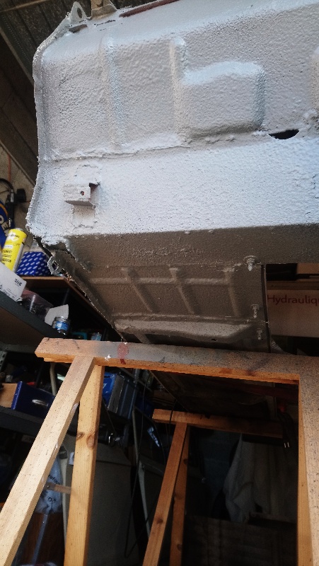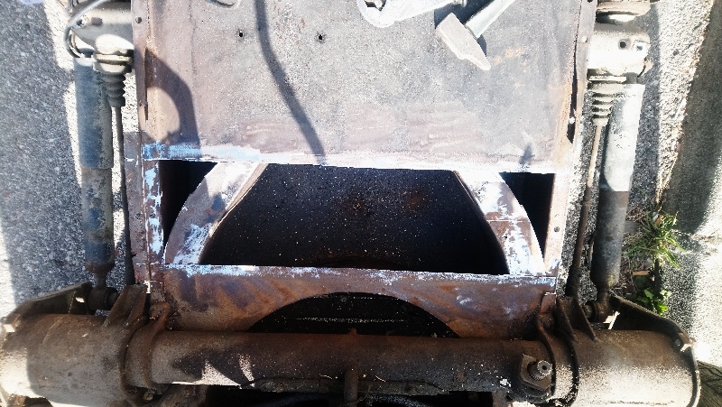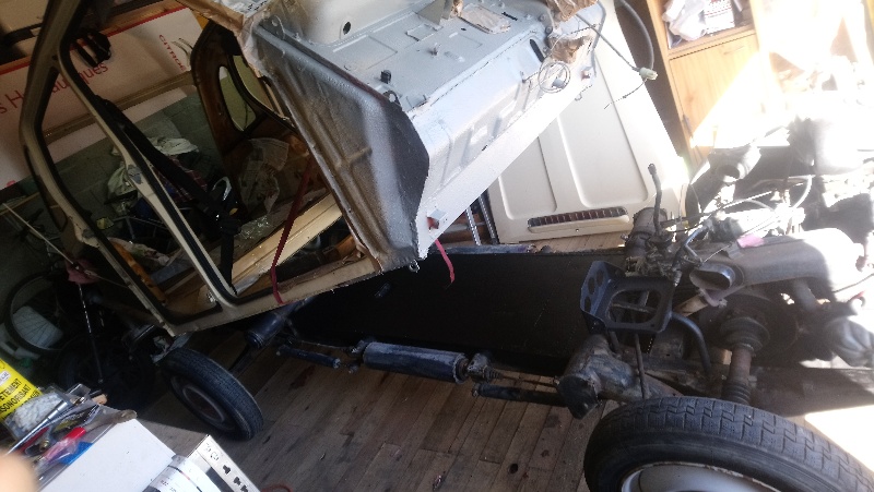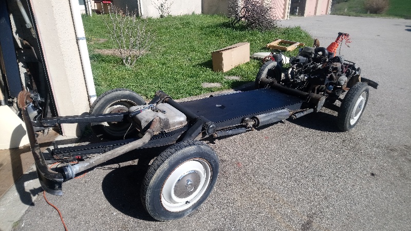Voici l'activité de ce samedi. Fini les soudures du châssis. Peinturlure et repose provisoire de la caisse...
